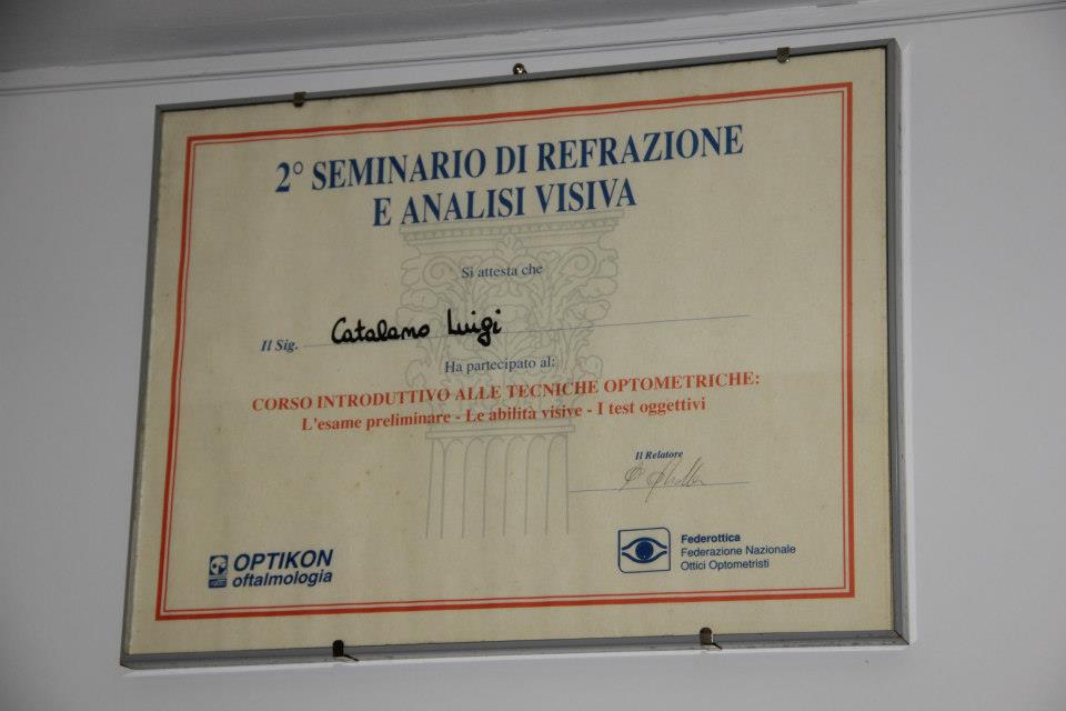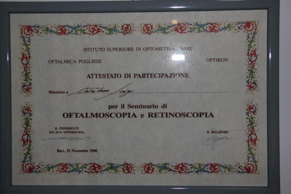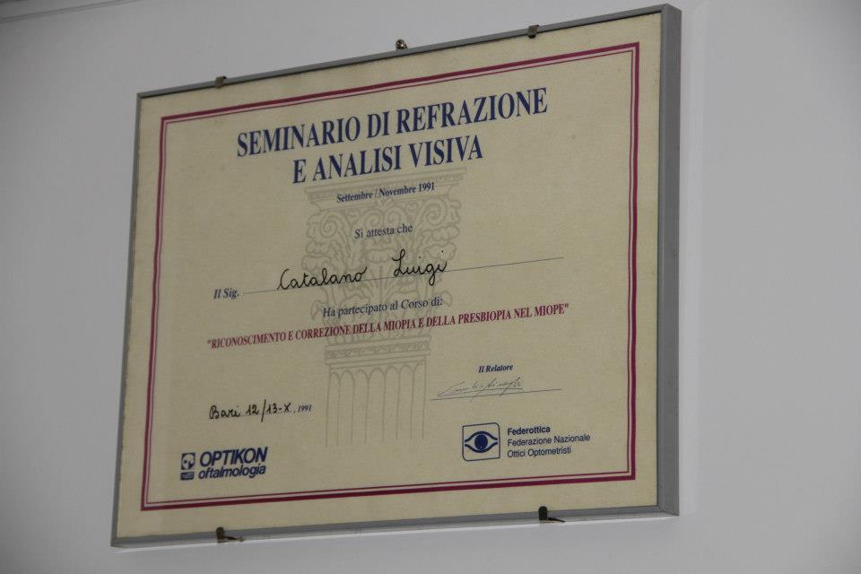 Il dottor Luigi Catalano, nel corso degli anni, ha conseguito diversi diplomi e attestati, tra cui: